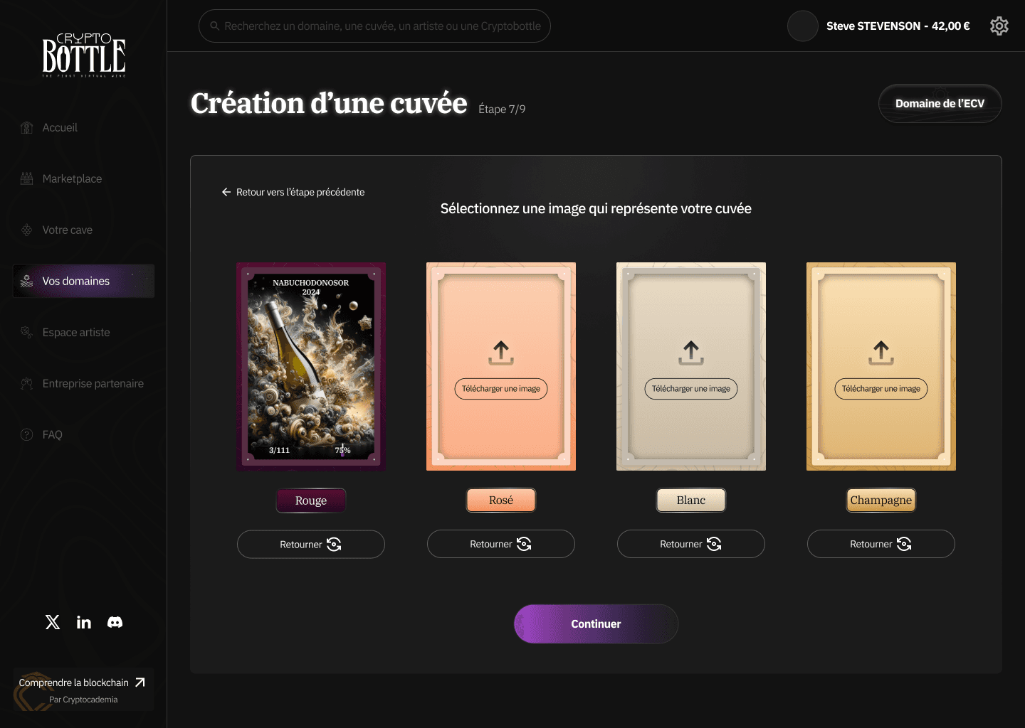 vos cuvées de Cryptobottles avec vos propres visuels ou ceux proposés par les artistes.