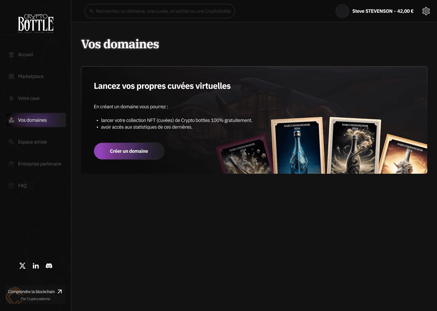 Collectionnez, investissez ou devenez artiste en créant vos propres NFT cryptobottles.